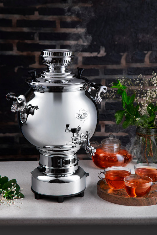 شرکت عالی نسب تولید کننده لوازم خانگی به ویژه فعال در زمینه تولید لوازم مورد نیاز برای تهیه چای و انواع دمنوشها است. این شرکت از زمانهای دور، همواره در تلاش بوده با ارائه محصولات با کیفیت لحظات آرامش بخشی را برای خانواده های ایرانی به ارمغان آورد. تولیدات این شرکت دارای تنوع و کیفیت بالایی بوده تا جایی که حتی در صادرات کالاها نیز فعالیت مناسبی داشته است. سماور گازسوز عالی نسب مدل Sahand Simin با ظرفیت 8 لیتر، گنجایش مناسبی برای استفاده در چندین روز دارد یا به طور مثال به دلیل ظرفیت بالا برای قرارگیری در محیطهایی مثل رستوران یا سایر فضاها نیز مناسب خواهد بود. سماور گازسوز عالی نسب مدل Sahand Simin دارای ترموسوئیچ اتوماتیک است که اگر سماور بدون آب باشد، خاموش شده و از آسیب به بدنه آن جلوگیری خواهد کرد. پیلوت و برنر استاندارد که برای آن قرار دارد برای ایمنی بیشتر در هنگام روشن بودن کاربرد مناسبی دارد.